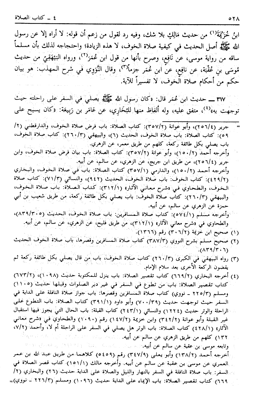 317 - حَدِيثُ ابْنِ عُمَرَ قَالَ: كَانَ رَسُولُ اللَّهِ صَلَّى اللَّهُ عَلَيْهِ وَسَلَّمَ يُصَلِّي فِي السَّفَرِ عَلَى رَاحِلَتِهِ حَيْثُ تَوَجَّهَتْ بِهِ4 مُتَّفَقٌ عَلَيْهِ وَلَهُ أَلْفَاظٌ مِنْهَا لِلْبُخَارِيِّ عَنْ عَامِرِ بْنِ رَبِيعَةَ كَانَ يُسَبِّحُ عَلَى