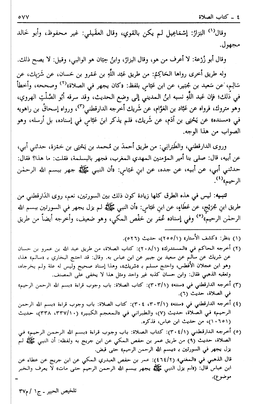 4 أخرجه الدارقطني في "سننه" "1/303، 304": كتاب الصلاة: باب وجوب قراءة "ابسم الله الرحمن الرحيم" في الصلاة، حديث "7"، والطبراني في " المعجم الكبير" "10/337، 338"، حديث "10651"، من حديث ابن عباس، فذكره.