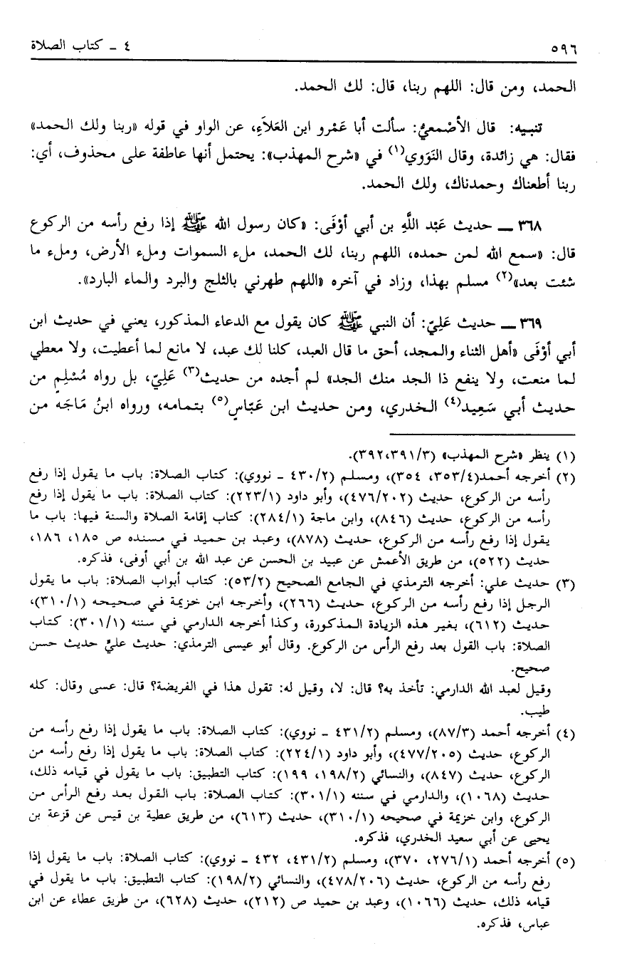 5 أخرجه أحمد "1/276، 370"، ومسلم "2/431، 432- نووي": كتاب الصلاة: باب ما يقول إذا رفع رأسه من الركوع، حديث "206/478"، والنسائي "2/198": كتاب التطبيق: باب ما يقول في قيامه ذلك، حديث "1066"، وعبد بن حميد ص "212"، حديث "628"، من طريق عطاء عن ابن عباس، فذكره.