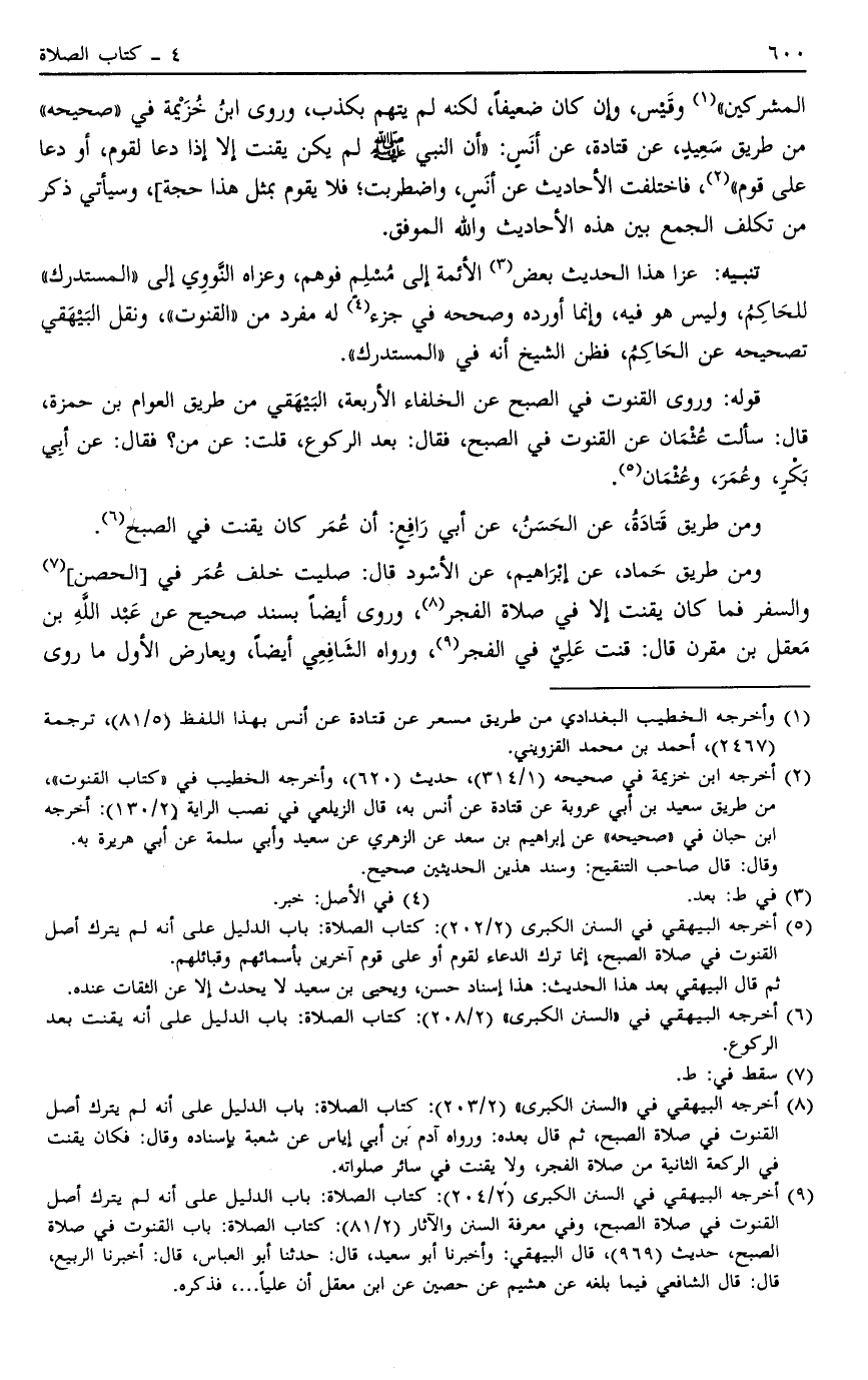 5 أخرجه البيهقي في السنن الكبرى "2/202": كتاب الصلاة: باب الدليل على أنه لم يترك أصل القنوت في صلاة الصبح، إنما ترك الدعاء لقوم أو على قوم آخرين بأسمائهم وقبائلهم.