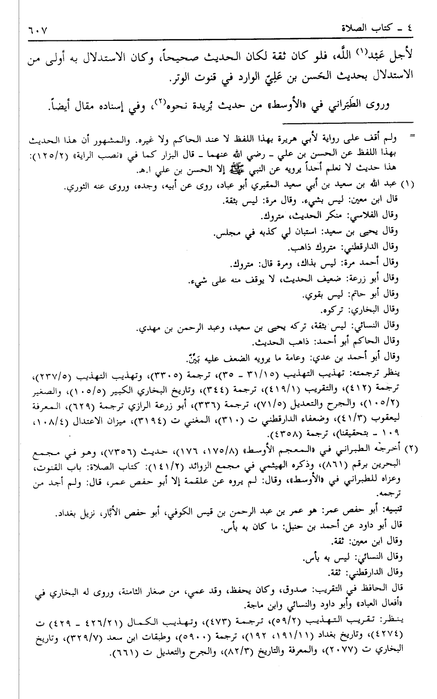 لِأَجْلِ عَبْدِ1 اللَّهِ فَلَوْ كَانَ ثِقَةً لَكَانَ الْحَدِيثُ صَحِيحًا وَكَانَ الِاسْتِدْلَال بِهِ أَوْلَى مِنْ الِاسْتِدْلَالِ بِحَدِيثِ الْحَسَنِ بْنِ عَلِيٍّ الْوَارِدِ فِي قُنُوتِ الْوِتْرِ