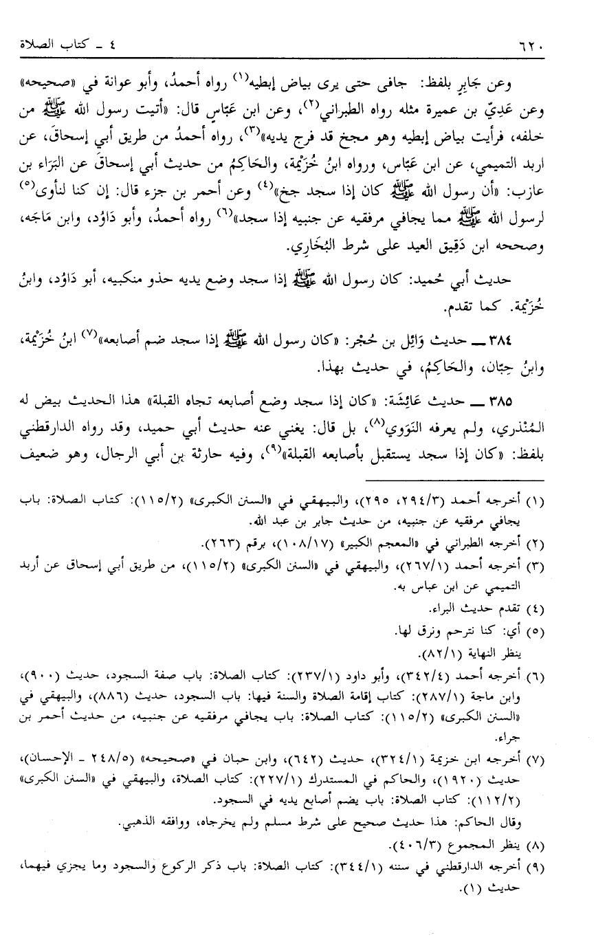1 أخرجه أحمد "3/294، 295"، والبيهقي في "السنن الكبرى" "2/115": كتاب الصلاة: باب يجافي مرفقيه عزا جنبيه، من حديث جابر بن عبد الله.