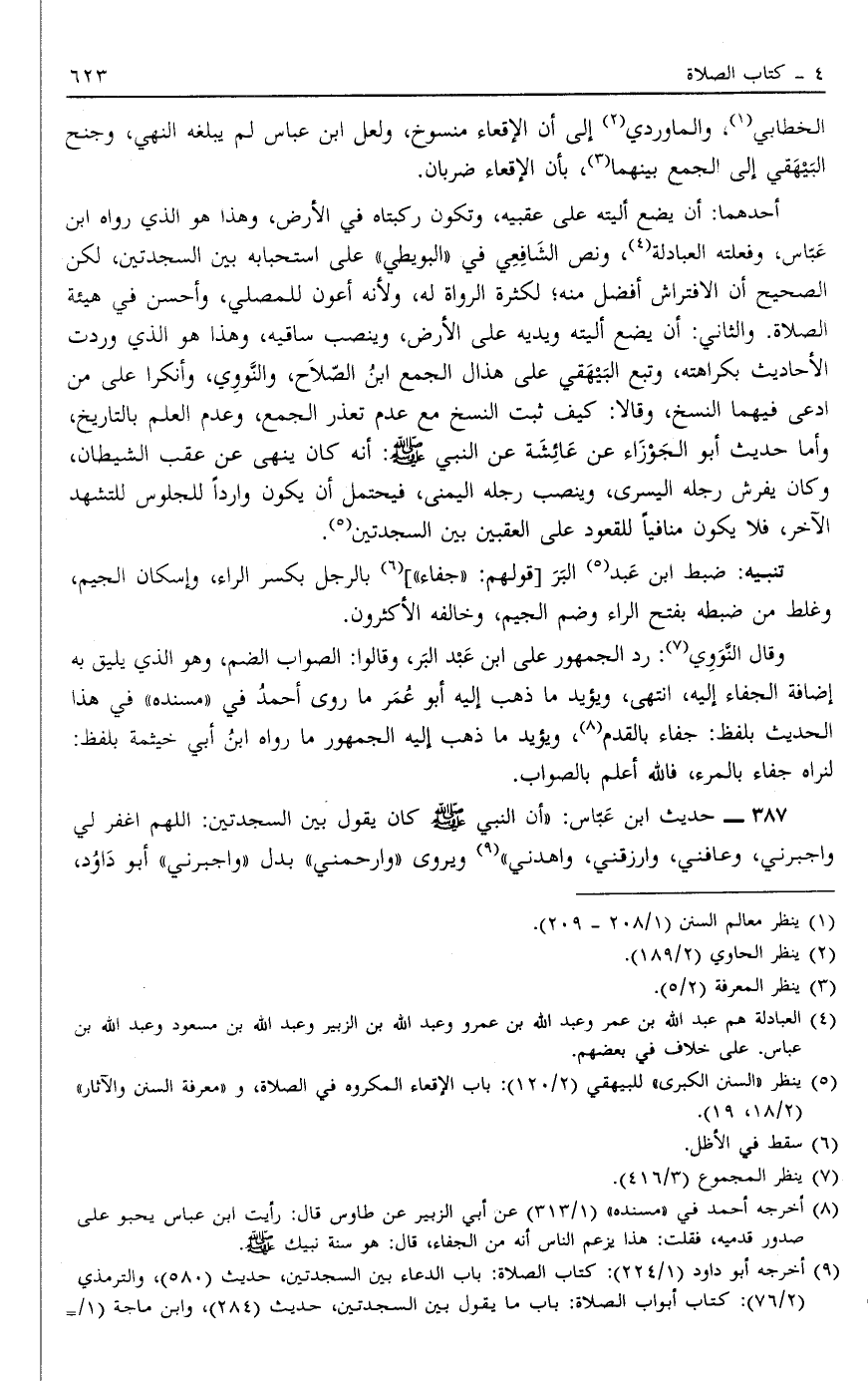 5 ينظر "السنن الكبرى" للبيهقي "2/120": باب الإقعاء المكروه في الصلاة، و"معرفة السنن والآثار" "2/19,18".
