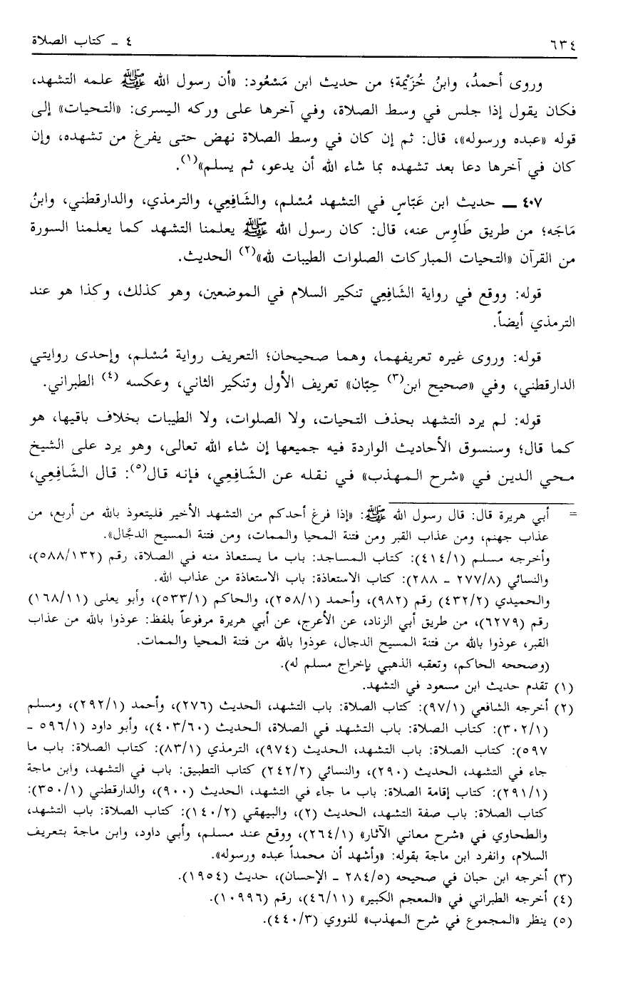 407 - حَدِيثُ ابْنِ عَبَّاسٍ فِي التَّشَهُّدِ مُسْلِمٌ وَالشَّافِعِيُّ وَالتِّرْمِذِيُّ وَالدَّارَقُطْنِيّ وَابْنُ مَاجَهْ مِنْ طَرِيقِ طَاوُسٍ عَنْهُ قَالَ: كَانَ رَسُولُ اللَّهِ صَلَّى اللَّهُ عَلَيْهِ وَسَلَّمَ يُعَلِّمُنَا التَّشَهُّدَ كَمَا يُعَلِّمُنَا السُّورَةَ مِنْ الْقُرْآنِ "التَّحِيَّاتُ الْمُبَارَكَاتُ الصَّلَوَاتُ الطَّيِّبَاتُ لِلَّهِ" 2 الْحَدِيثُ