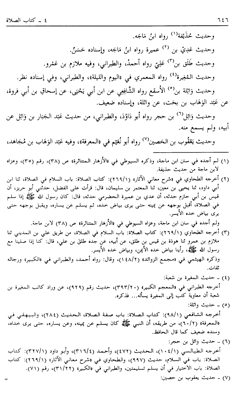 3 أخرجه الطحاوي "1/269": كتاب الصلاة: باب السلام في الصلاة، من طريق على بن المديني ثنا ملازم بن عمرو ثنا هوذة بن قيس بن طلق، عن أبيه، عن جده طلق بن على، قال: كنا إذا صلينا مع رسول الله صَلَّى اللَّهُ عَلَيْهِ وَسَلَّمَ، رأينا بياض خده الأيمن، وبياض خده الأيسر.