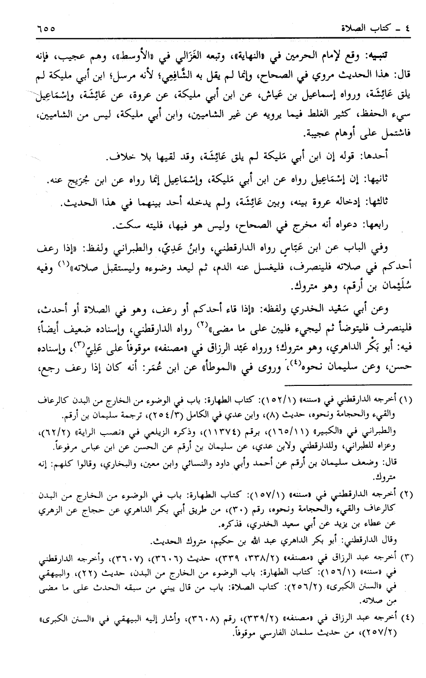 1 أخرجه الدارقطني في "سننه""1/152": كتاب الطهارة: باب في الوضوء من الخارج من البدن كالرعاف والقيء والحجامة ونحوه، حديث "8"، وابن عدي في الكامل "3/254"، ترجمة سليمان بن أرقم.
