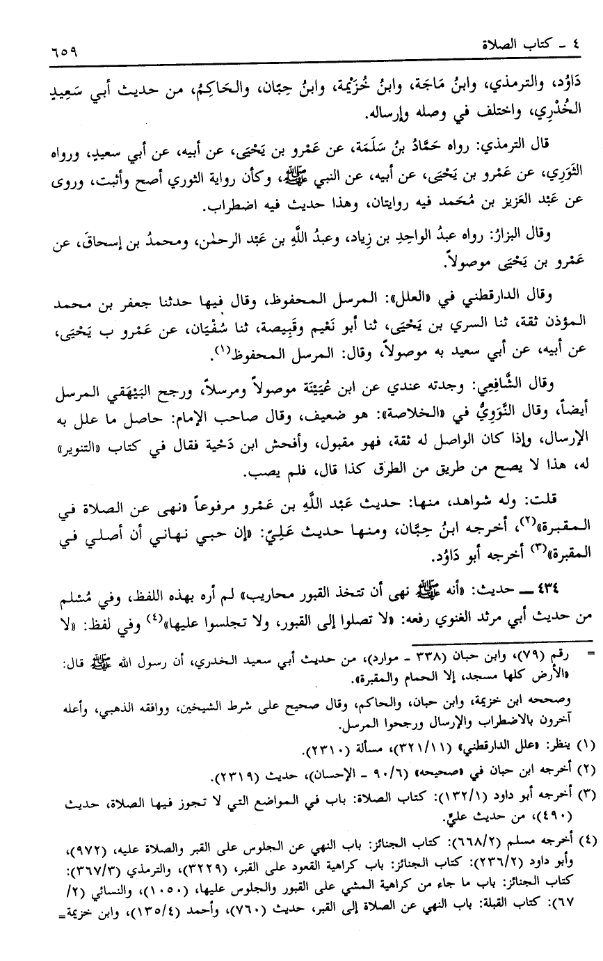 قُلْتُ: وَلَهُ شَوَاهِدُ مِنْهَا حَدِيثُ عَبْدِ اللَّهِ بْنِ عَمْرٍو مَرْفُوعًا: "نُهِيَ عَنْ الصَّلَاةِ فِي الْمَقْبَرَةِ" 2 أَخْرَجَهُ ابْنُ حِبَّانَ وَمِنْهَا حديث علي: "إن حبي نَهَانِي أَنْ أُصَلِّيَ فِي الْمَقْبَرَةِ" 3 أَخْرَجَهُ أَبُو دَاوُد.