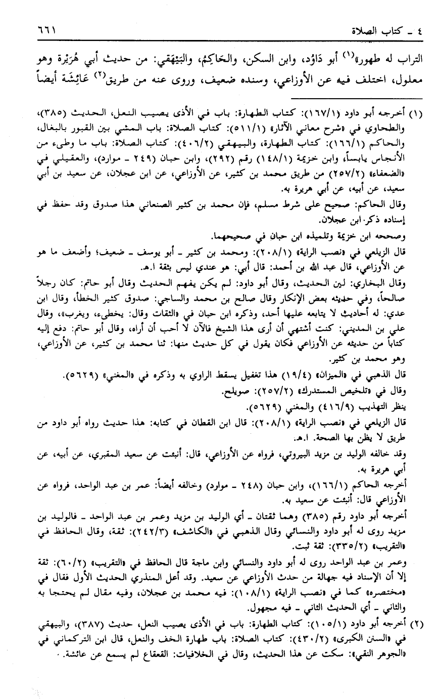 1 أخرجه أبو داود "1/167": كتاب الطهارة: باب في الأذى يصيب النحل، الحديث "385"، والطحاوي في "شرح معاني الآثار" "1/511": كتاب الصلاة: باب المشي بين القبور بالبغال، والحاكم "1/166": كتاب الطهارة، والبيهقي "2/406": كتاب الصلاة: باب ما وطىء من الأنجاس يابساً، وابن خزيمة "1/148" رقم "292"، وابن حبان "249- موارد"، والعقيلي في "الضعفاء" "2/257" من طريق محمد بن كثير، عن الأوزاعي، عن ابن عجلان، عن سعيد بن أبي سعيد، عن أبيه، عن أبي هريرة به.