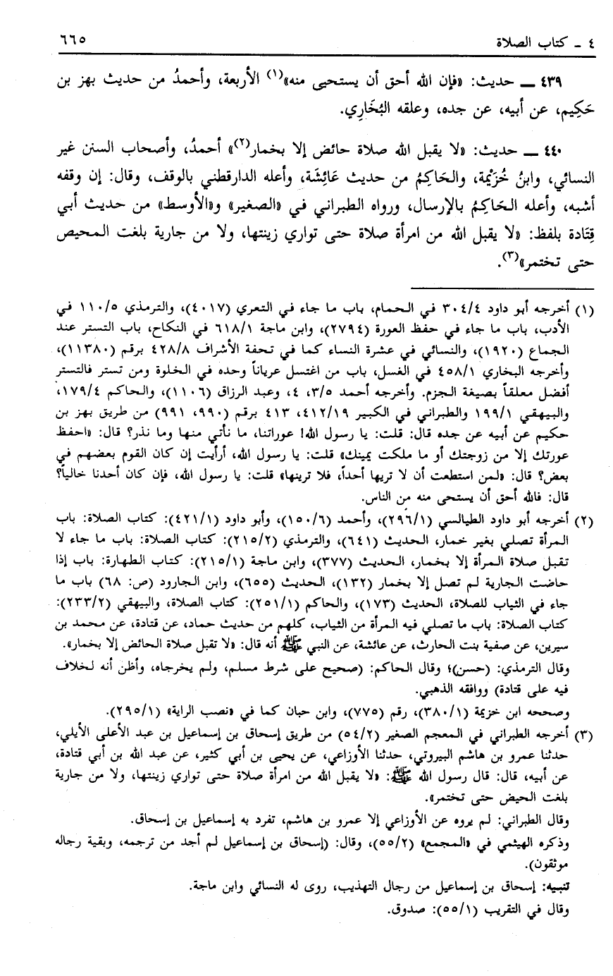 440 - حَدِيثُ: "لَا يَقْبَلُ اللَّهُ صَلَاةَ حَائِضٍ إلَّا بِخِمَارٍ" 2 أَحْمَدُ وَأَصْحَابُ السُّنَنِ غَيْرُ النَّسَائِيّ وَابْنُ خُزَيْمَةَ وَالْحَاكِمُ مِنْ حَدِيثِ عَائِشَةَ وَأَعَلَّهُ الدَّارَقُطْنِيُّ بِالْوَقْفِ وَقَالَ: إنَّ وَقْفَهُ أَشْبَهُ وَأَعَلَّهُ الْحَاكِمُ بِالْإِرْسَالِ وَرَوَاهُ الطَّبَرَانِيُّ فِي الصَّغِيرِ وَالْأَوْسَطِ مِنْ حَدِيثِ أَبِي قَتَادَةَ بِلَفْظِ: "لَا يَقْبَلُ اللَّهُ مِنْ امْرَأَةٍ صَلَاةً حَتَّى تُوَارِيَ زِينَتَهَا وَلَا مِنْ جَارِيَةٍ بَلَغْتِ الْمَحِيضَ حَتَّى تَخْتَمِرَ" 3