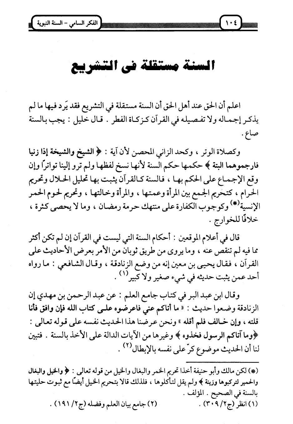 السنة مستقلة في التشريع: