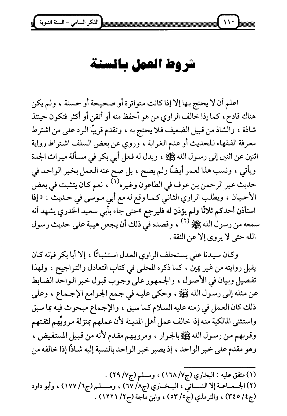 اشروط العمل بالسنة: