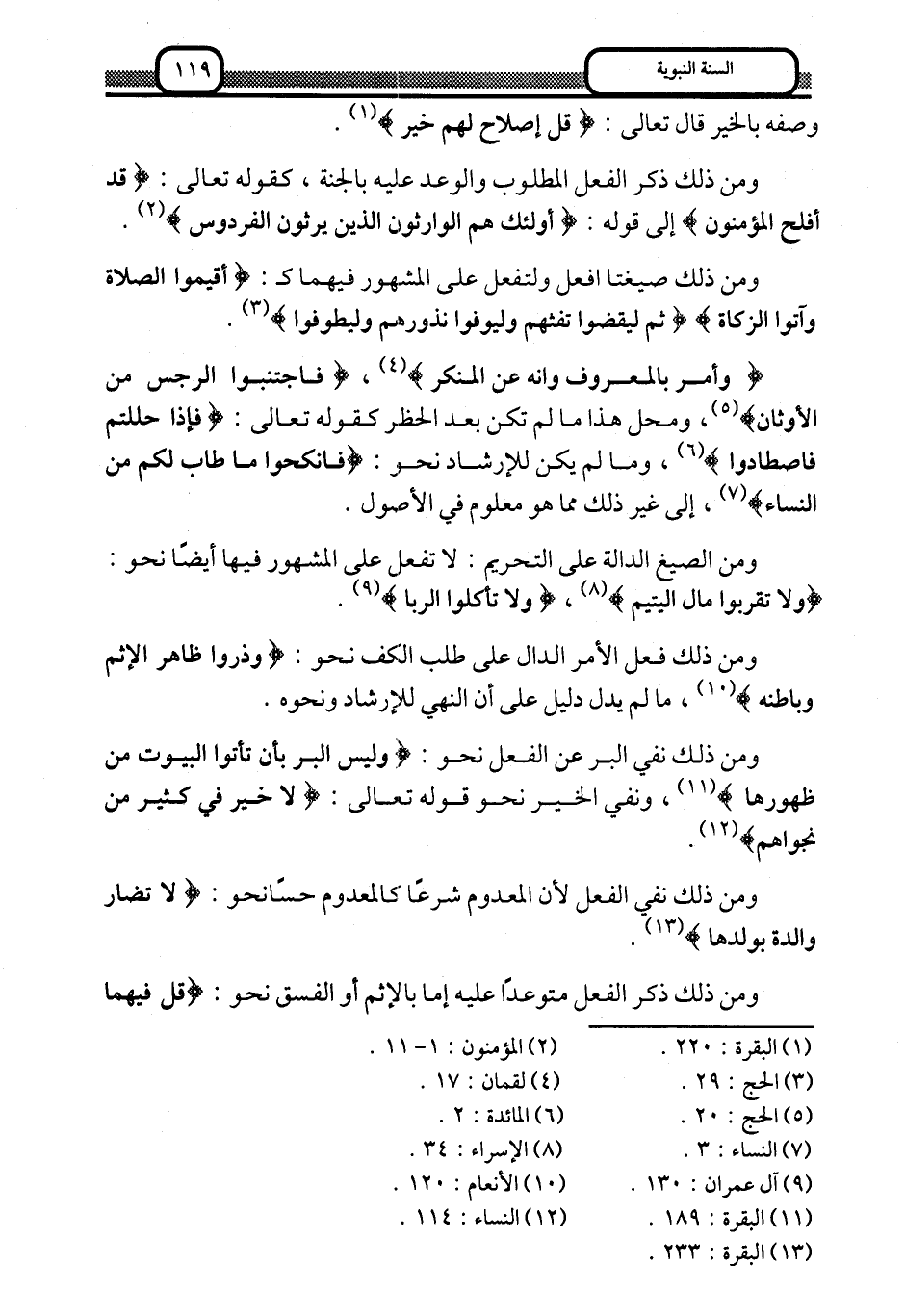 ومن ذلك ذكر الفعل المطلوب والوعد عليه بالجنة، كقوله تعالى: {قَدْ أَفْلَحَ الْمُؤْمِنُون} إلى قوله: {أُولَئِكَ هُمُ الْوَارِثُونَ، الَّذِينَ يَرِثُونَ الْفِرْدَوْسَ} 2.