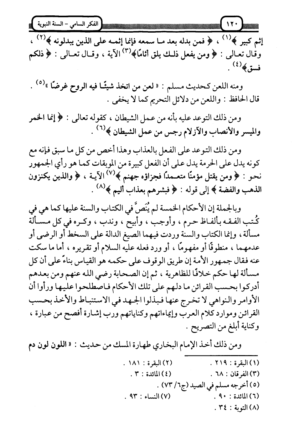 وبالجملة إن الأحكام الخمسة لم يُنَصُّ في الكتاب والسنة عليها كما هي في كتب الفقه بألفاظ حرِّم، وأوجب، وأبيح، وندب، وكره في كل مسألة، وإنما الكتاب والسنة وردت فيهما الصيغ الدالة على السخط أو الرضى أو عدمهما، منطوقًا أو مفهومًا، أو ورد فعله -عليه السلام- وتقريره، أما ما سكت عنه فقال جمهور الأمة: إن طريق الوقوف على حكمه هو القياس بناءً على أن كل مسألة لها حكم خلافًا للظاهرية، ثم إن الصحابة -رضي الله عنهم, ومن بعهم أدركوا بحسب القرائن ما دلهم على تلك الأحكام, فاصطلحوا عليها ورأوا أن الأوامر والنواهي لا تخرج عنها, فبذلوا الجهد في الاستنباط والأخذ بحسب القرائن وموارد كلام العرب وإيماءتهم كناياتهم, ورب إشارة أفصح من عبارة, وكناية أبلغ من التصريح.