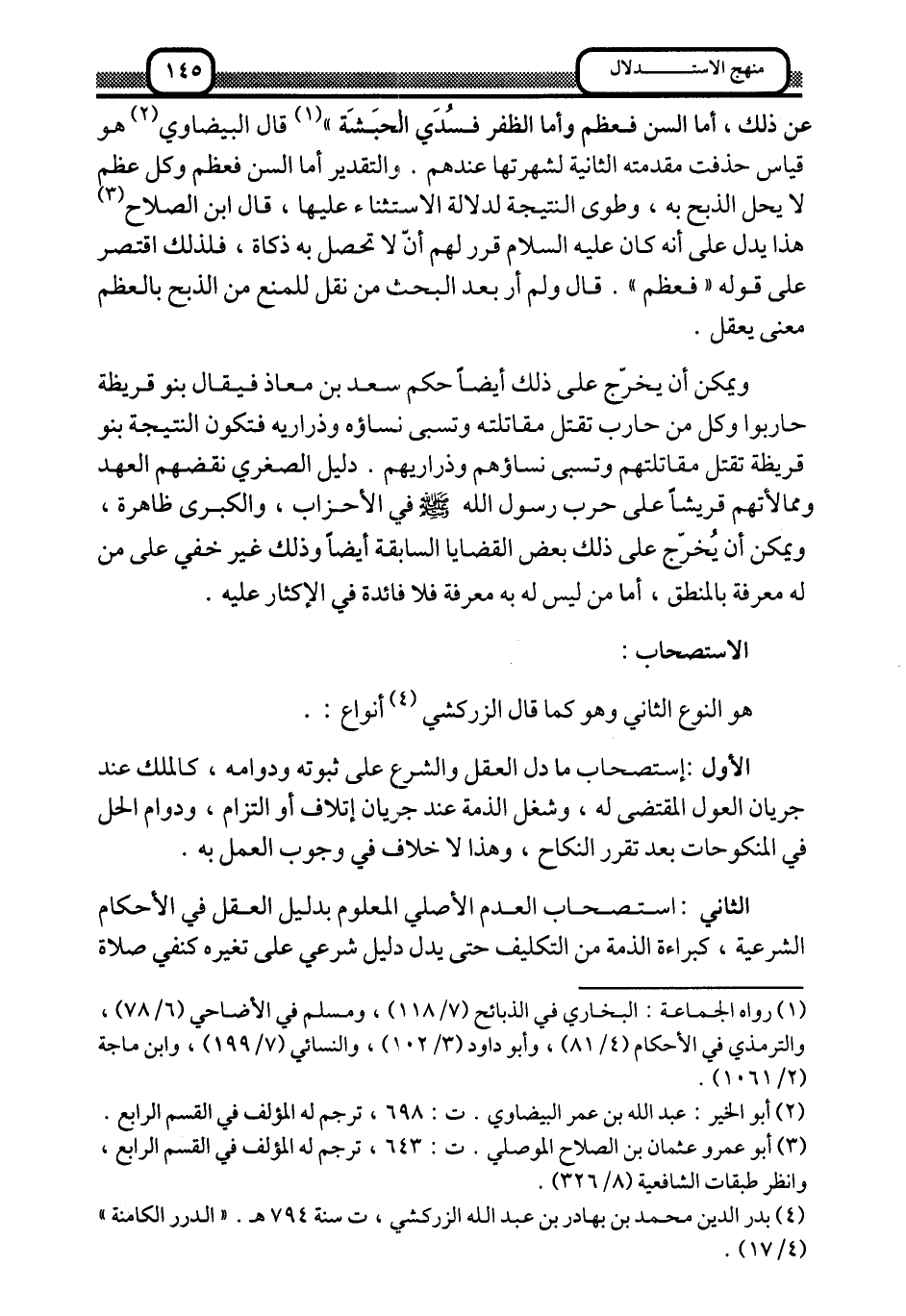 ويمكن أن يخرج على ذلك أيضًا حكم سعد بن معاذ, فيقال: بنو قريظة حاربوا, وكل من حارب تقتل مقاتلته, وتسبى نساؤه وذراريه, فتكون النتيجة: بنو قريظة تقتل مقاتلهم وتسبى نساؤهم وذراريهم. دليل الصغرى نقضهم العهد وممالأتهم قريشًا على حرب رسول الله -صلى الله عليه وسلم- في الأحزاب، والكبرى ظاهرة، ويمكن أن يخرَّج على ذلك بعض القضايا السابقة أيضًا, وذلك غير خفي على من له معرفة بالمنطق، أما من ليس له به معرفة فلا فائدة في الإكثار عليه.