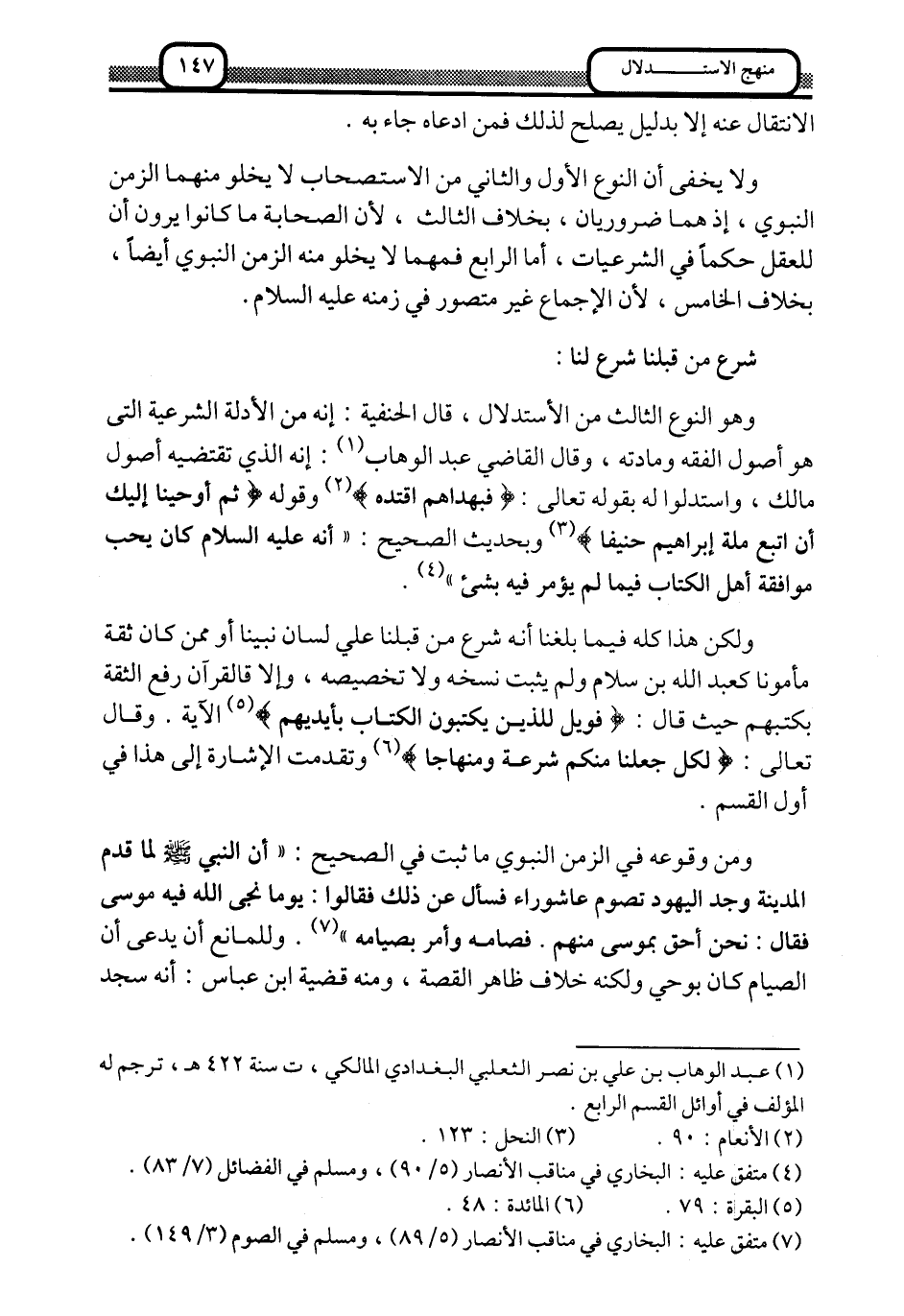 وهو النوع الثالث من الاستدلال، قال الحنفية: إنه من الأدلة الشرعية التي هو أصل الفقه ومادته، وقال القاضي عبد الوهاب1: إنه الذي تقتضيه أصول مالك، واستدلوا له بقوله تعالى: {فَبِهُدَاهُمُ اقْتَدِه} 2 وقوله: {ثُمَّ أَوْحَيْنَا إِلَيْكَ أَنِ اتَّبِعْ مِلَّةَ إِبْرَاهِيمَ حَنِيفًا} 3 وبحديث الصحيح: "أنه -عليه السلام- كان يحب موافقة أهل الكتاب فيما لم يؤمر فيه بشيء"4.