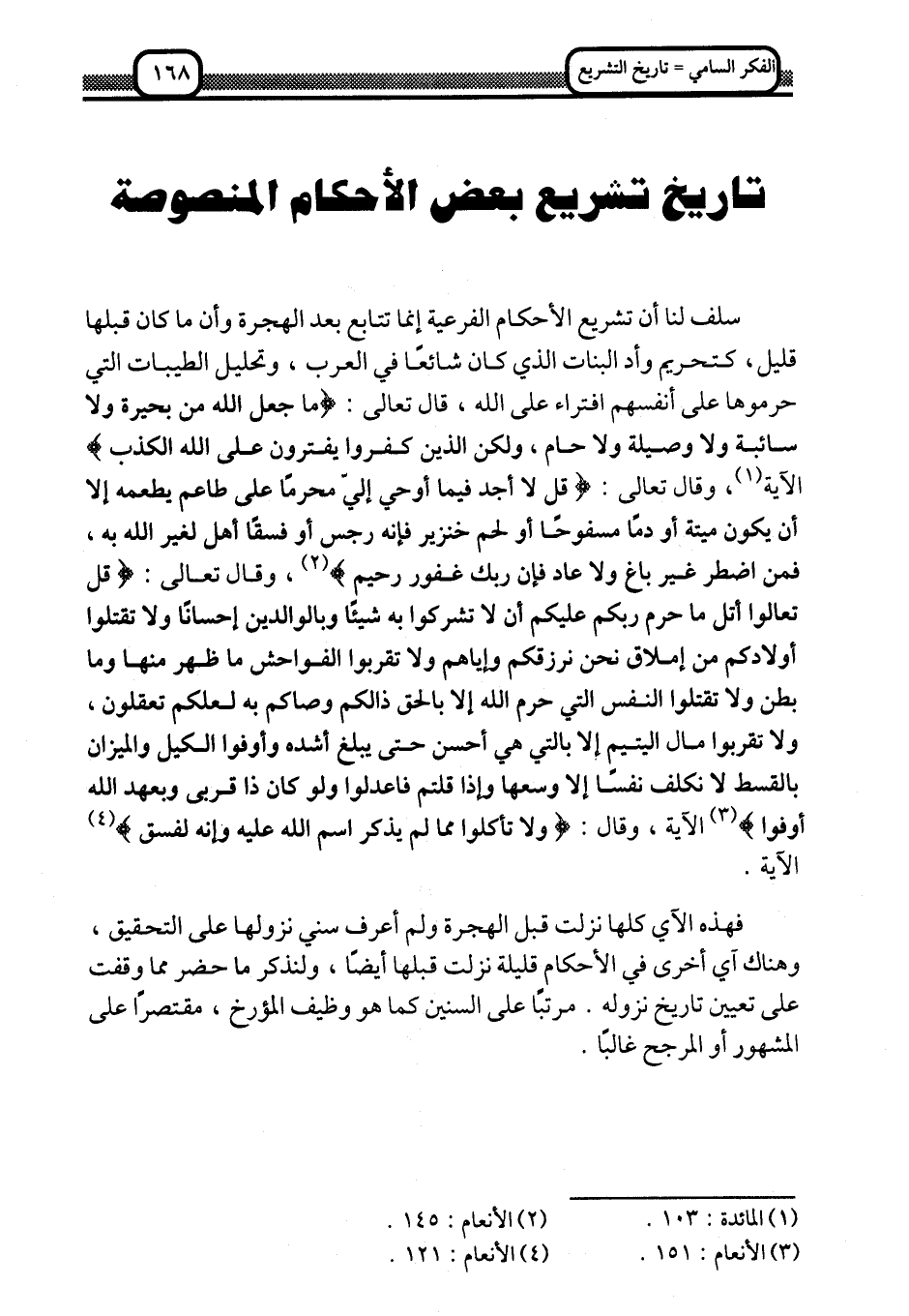 تاريخ تشريع بعض الأحكام المنصوصة:
