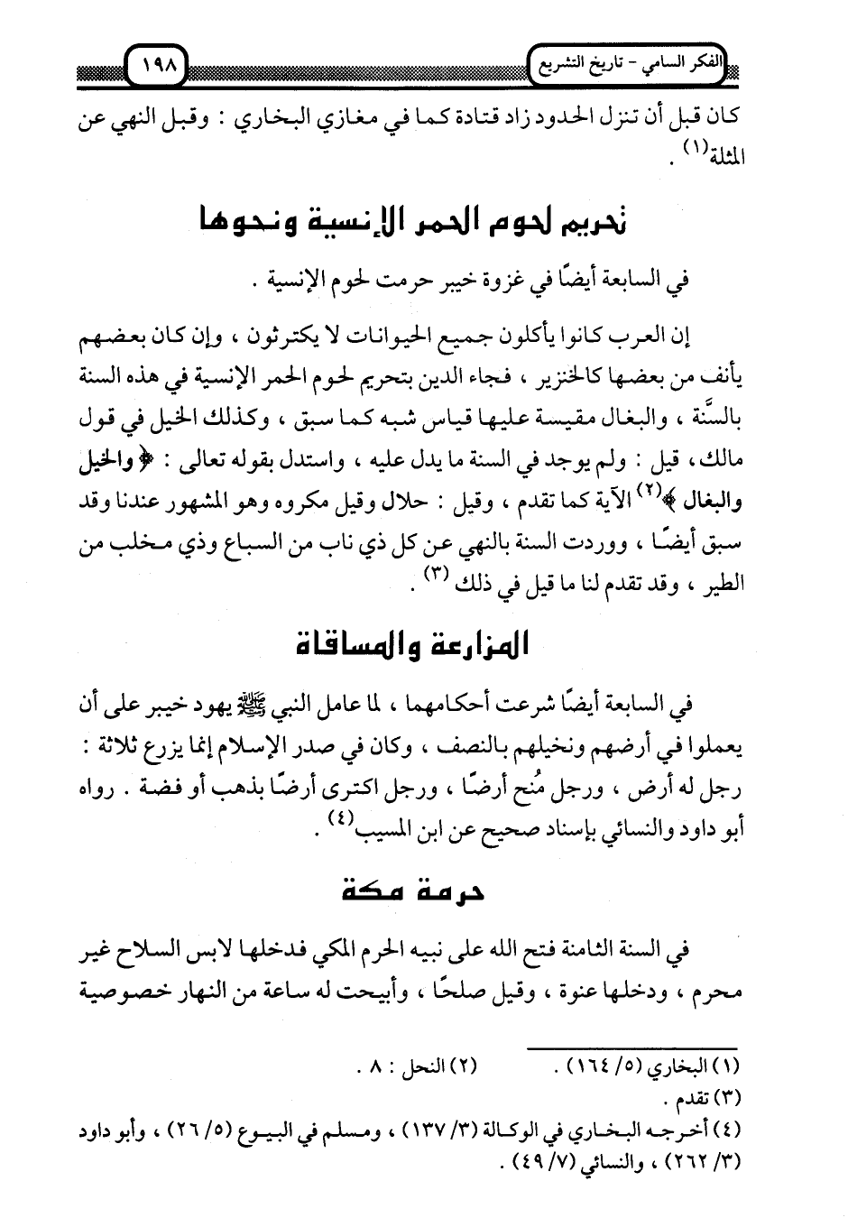 تحريم لحوم الحمر الإنسية ونحوها، المزارعة والمساقاة، حرمة مكة