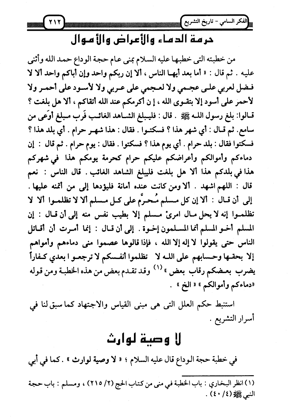 حرمة الدماء والأعراض والأموال، لا وصية لوارث: