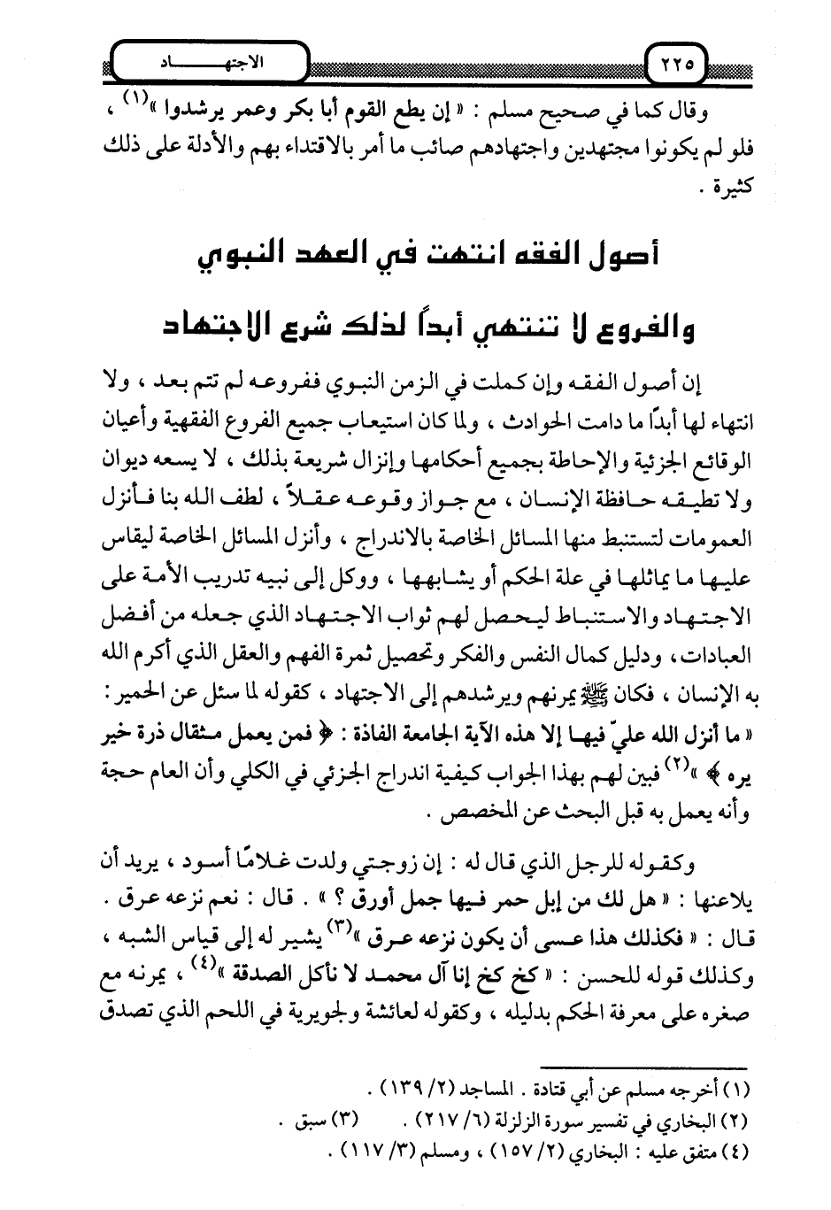 أصول الفقه انتهت في العهد النبوي, والفروع لا تنتهي أبدًا, لذلك شرِّع الاجتهاد: