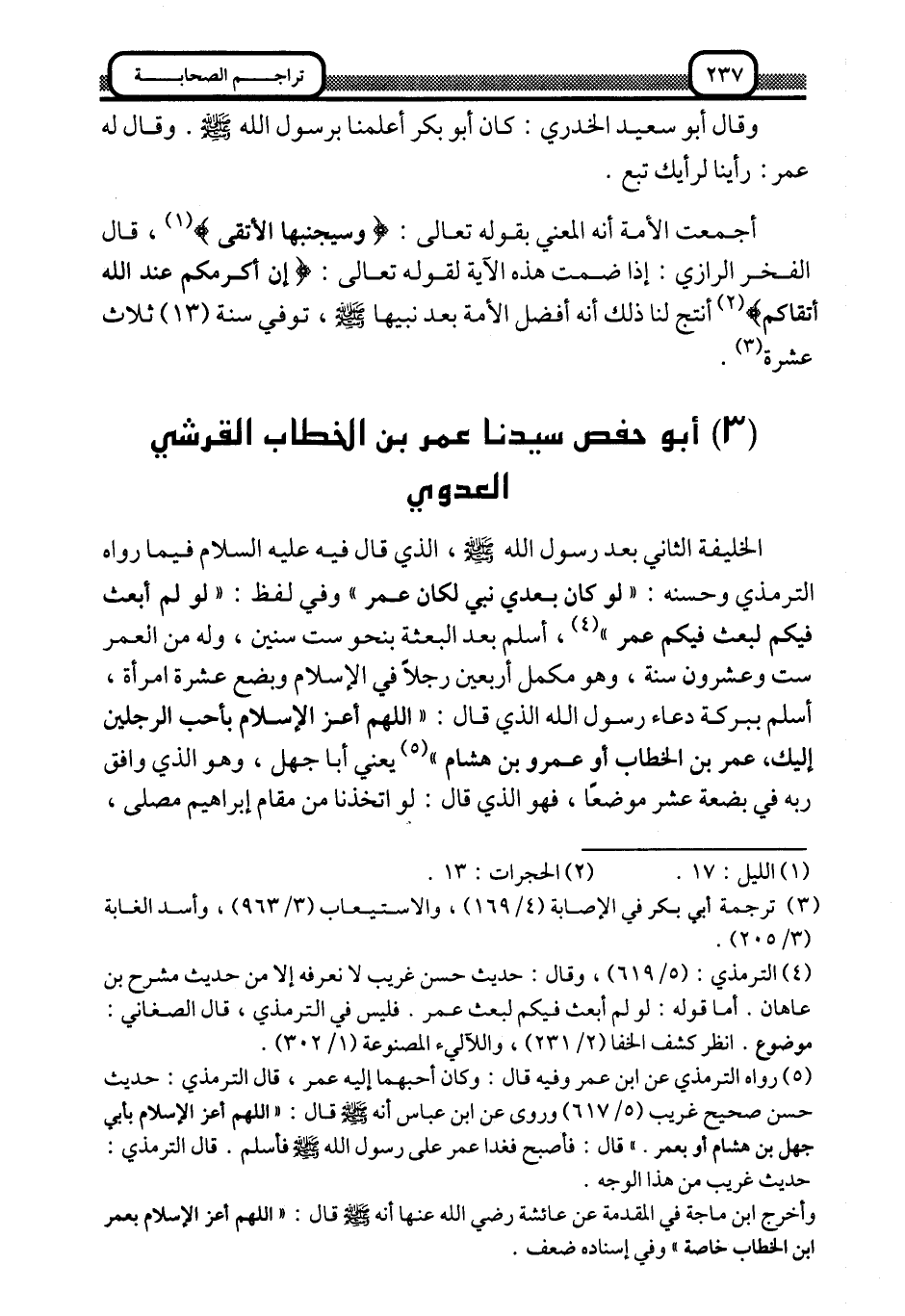 4 الترمذي: "5/ 619"، وقال: حديث حسن غريب, لا نعرفه إلّا من حديث مشرح بن عاهان, أما قوله: "لو لم أبعث فيكم لبعث عمر". فليس في الترمذي، قال الصغاني: موضوع: انظر كشف الخفا "2/ 231"، واللآليء المصنوعة "1/ 302".