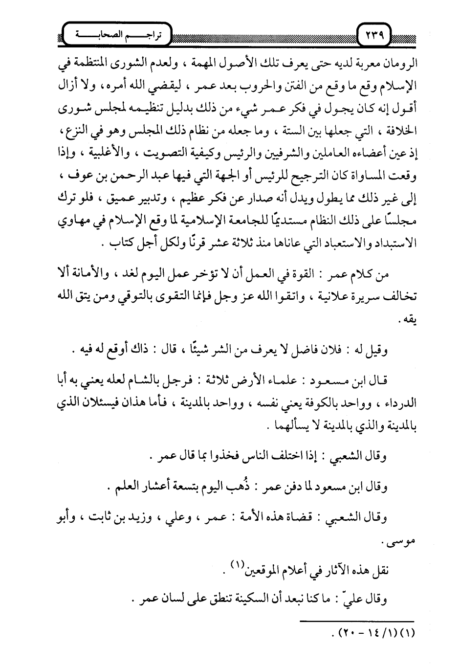 الرومان معرَّبة لديه حتى يعرف تلك الأصول المهمة، ولعدم الشورى المنتظمة في الإسلام وقع ما وقع في الفتن والحروب بعد عمر, ليقضي الله أمره، ولا أزال أقول: إنه كان يجول في فكر عمر شيء من ذلك بدليل تنظيمه لمجلس شورى الخلافة، التي جعلها بين الستة، وما جعله من نظام ذلك المجلس وهو في النزع؛ إذا عيَّن أعضاءه العالمين والشرفيين والرئيس وكيفية التصويت، والأغلبية، وإذا وقعت المساواة كان الترجيح للرئيس أو الجهة التي فيها عبد الرحمن بن عوف، إلى غير ذلك مما يطول, ويدل أنه صدار عن فكر عظيم، وتدبير عميق، فلو ترك مجلسًا على ذلك النظام مستديمًا للجامعة الإسلامية لما وقع الإسلام في مهاوي الاستبداد والاستبعاد التي عاناها منذ ثلاثة عشر قرنًا, ولكل أجل كتاب.