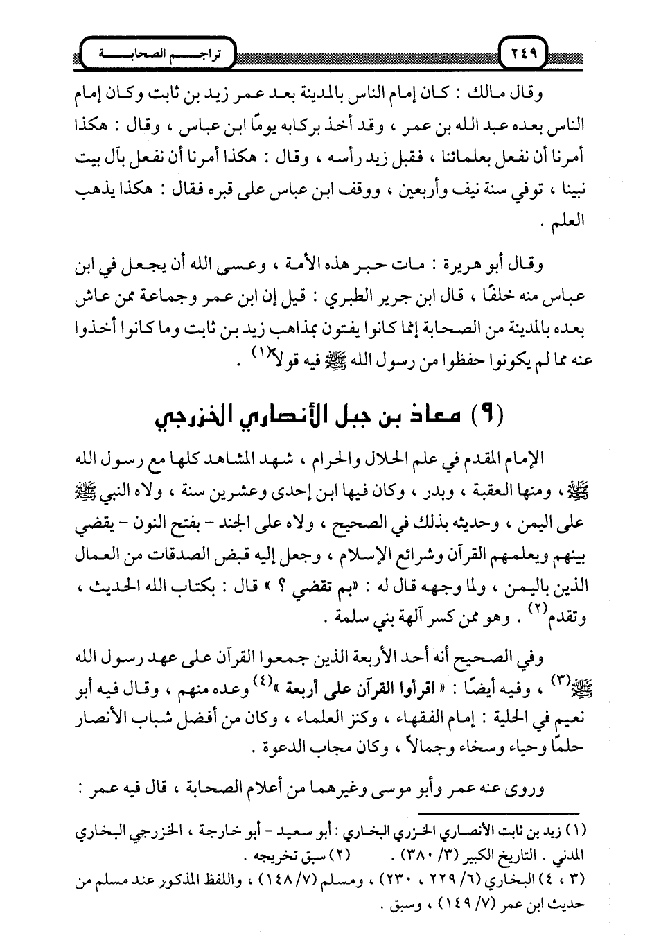 1 زيد بن ثابت الأنصاري الخزري البخاري: أبو سعيد - أبو خارجة، الخزرجي البخاري المدني. التاريخ الكبير "3/ 380".