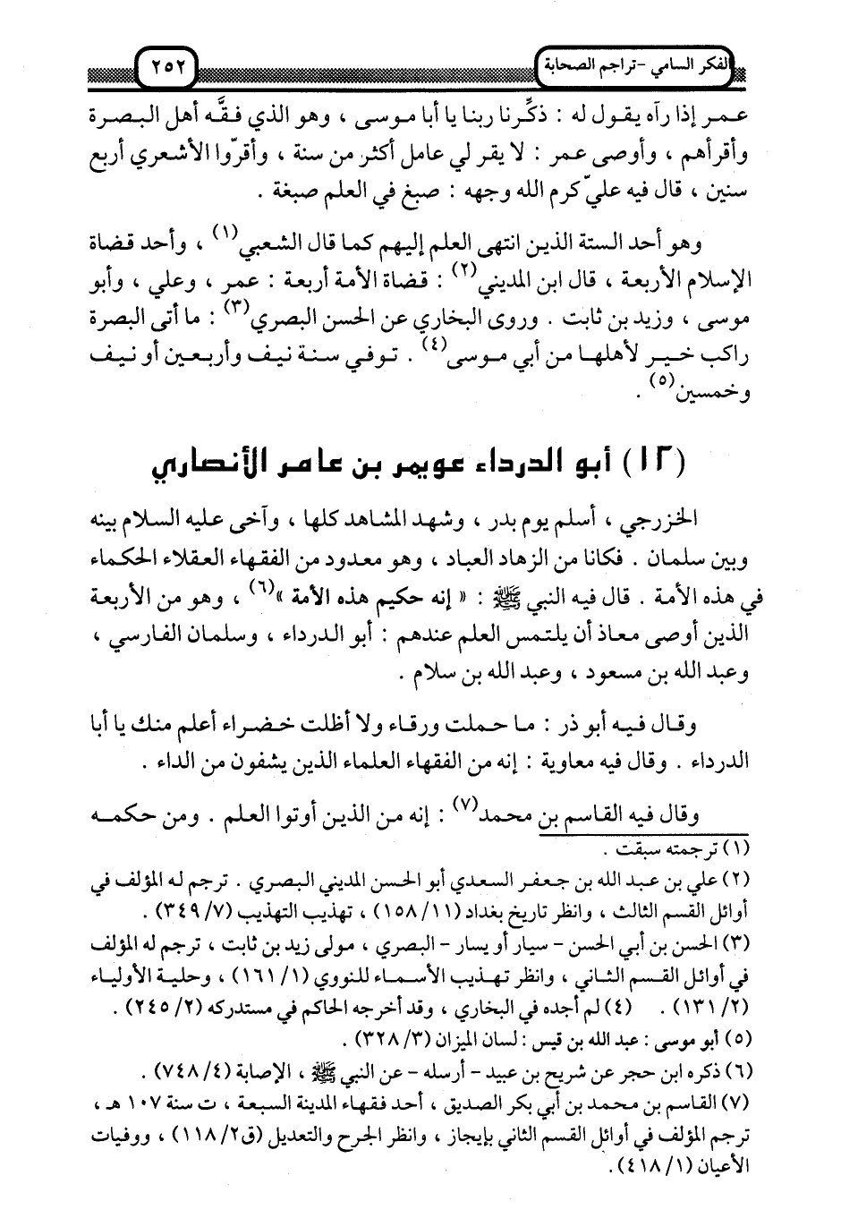 ترجمة أبو الدرداء عويمر بن عامر الأنصاري: