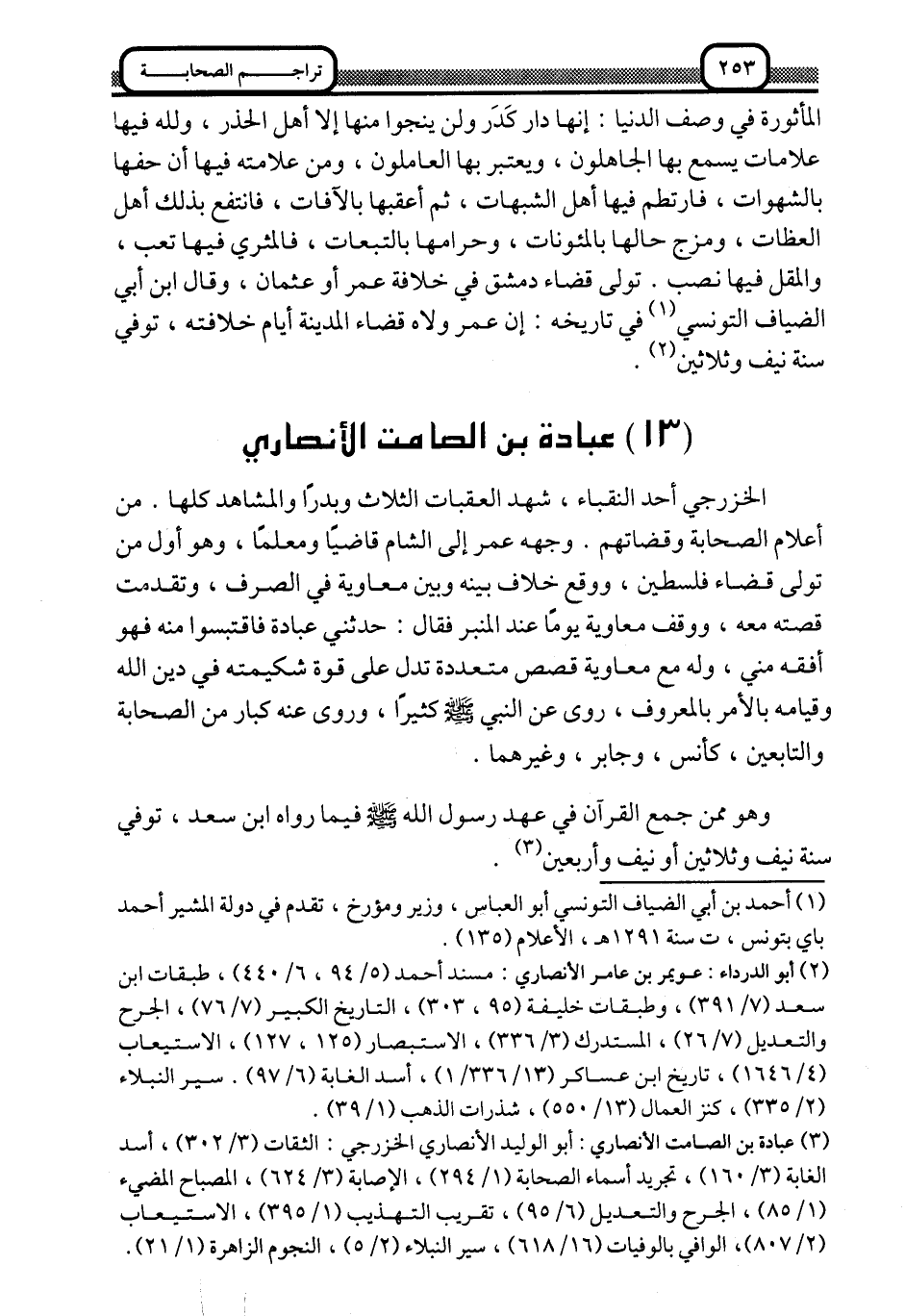 1 عبادة بن الصامت الأنصاري: أبو الوليد الأنصاري الخزرجي: الثقات "3/ 302"، أسد الغابة "3/ 160"، تجريد أسماء الصحابة "1/ 294"، الإصابة "3/ 624"، المصابح المضيء "1/ 85"، الجرح والتعديل "6/ 95"، تقريب التهذيب "1/ 395"، الاستيعاب "2/ 807"، الوافي بالوفيات "16/ 816"، سير النبلاء "2/ 5"، النجوم الزاهرة "1/ 21".