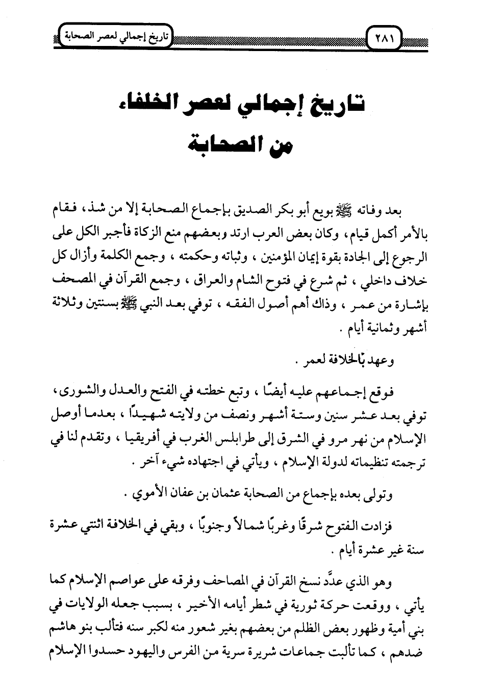 تاريخ إجمالي لعصر الخلفاء من الصحابة: