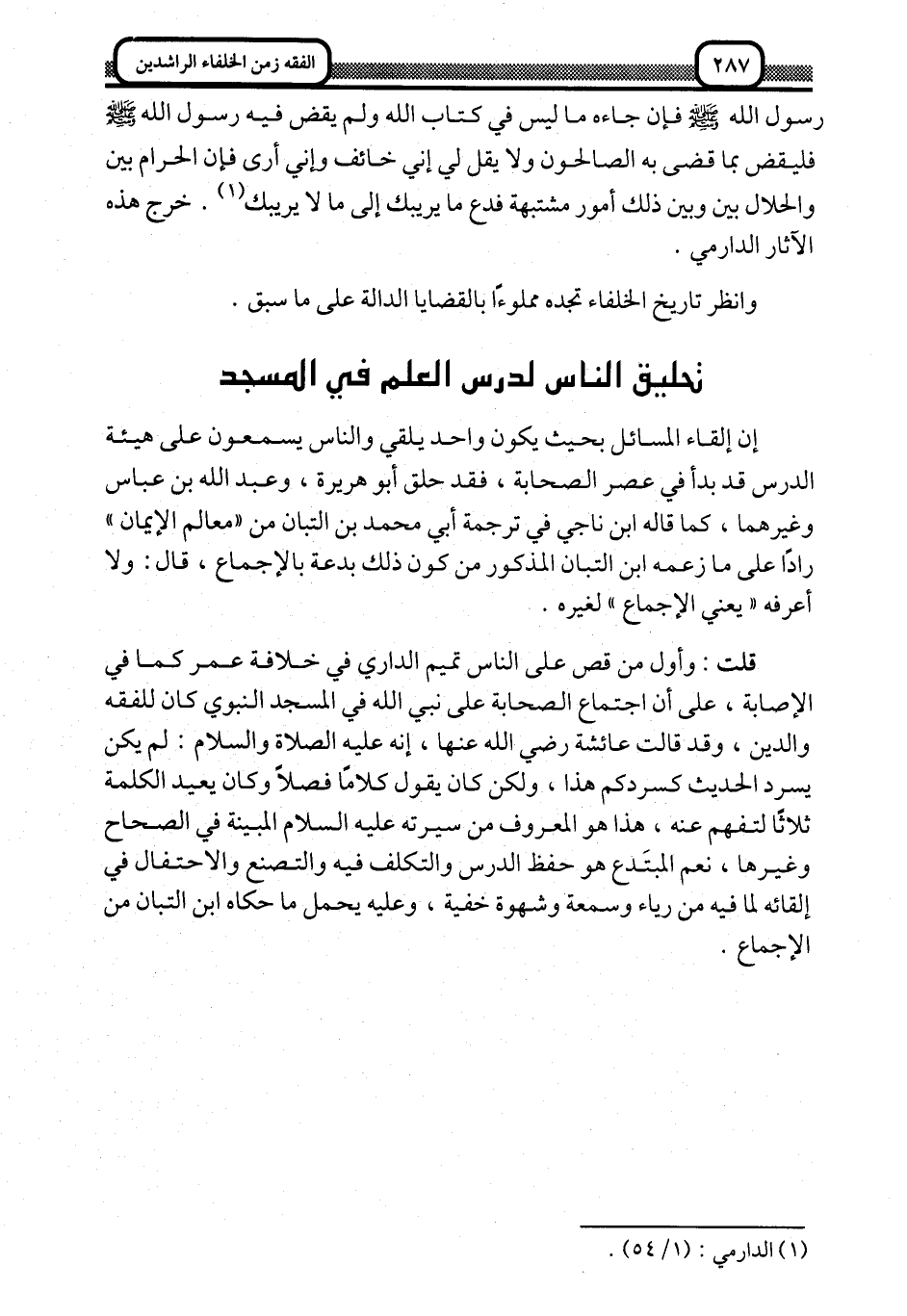 إن إلقاء المسائل بحيث يكون واحد يلقي والناس يسمعون على هيئة الدرس قد بدأ في عصر الصحابة، فقد حلّق أبو هريرة وعبد الله بن عباس وغيرهما، كما قال ابن ناجي في ترجمة أبي محمد بن التبان من "معالم الإيمان" رادًّا على ما زعمه ابن التبان المذكور من كون ذلك بدعة بالإجماع، قال: ولا أعرفه "يعني الإجماع" لغيره.
