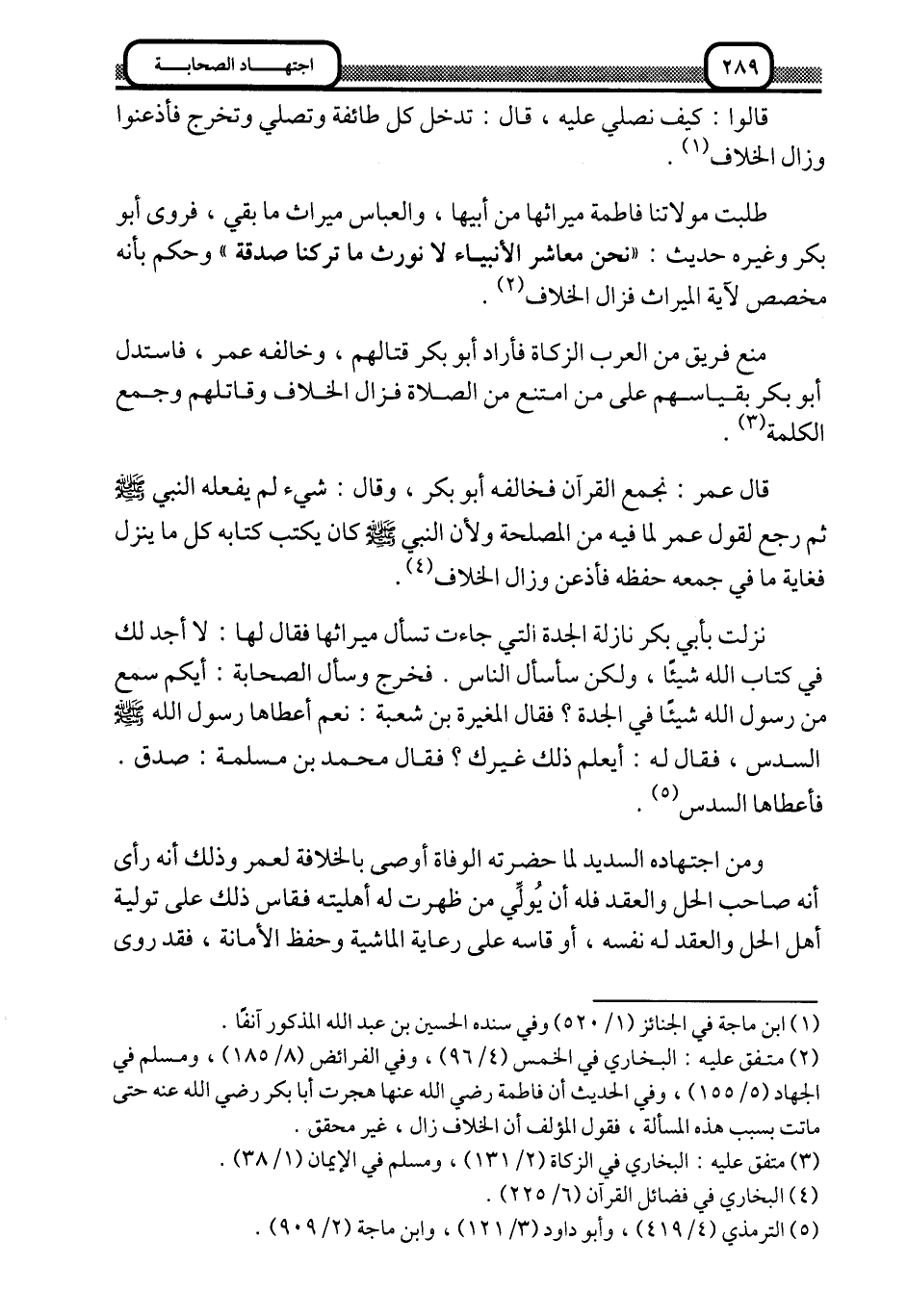 2 متفق عليه: البخاري في الخمس "4/ 96"، وفي الفرائض "8/ 185"، ومسلم في الجهاد "5/ 155" وفي الحديث أن فاطمة -رضي الله عنها- هجرت أبا بكر -رضي الله عنه- حتى ماتت بسبب هذه المسألة، فقول المؤلف أن الخلاف زال، غير محقق.
