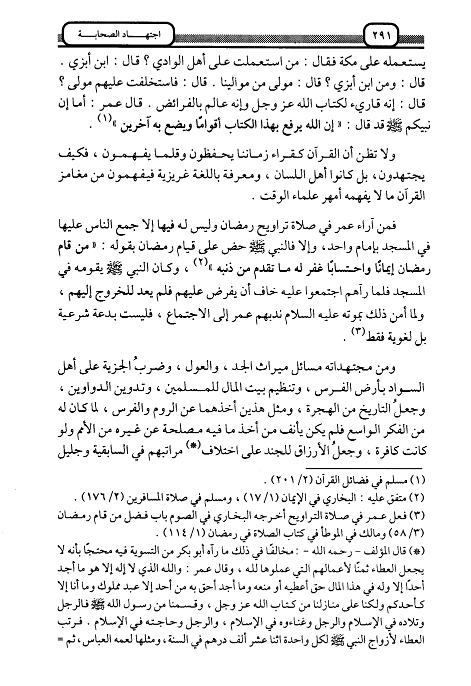 3 فعل عمر في صلاة التروايح, أخرجه البخاري في الصوم, باب فضل من قام رمضان "3/ 85", ومالك في الموطأ في كتاب الصلاة في رمضان.