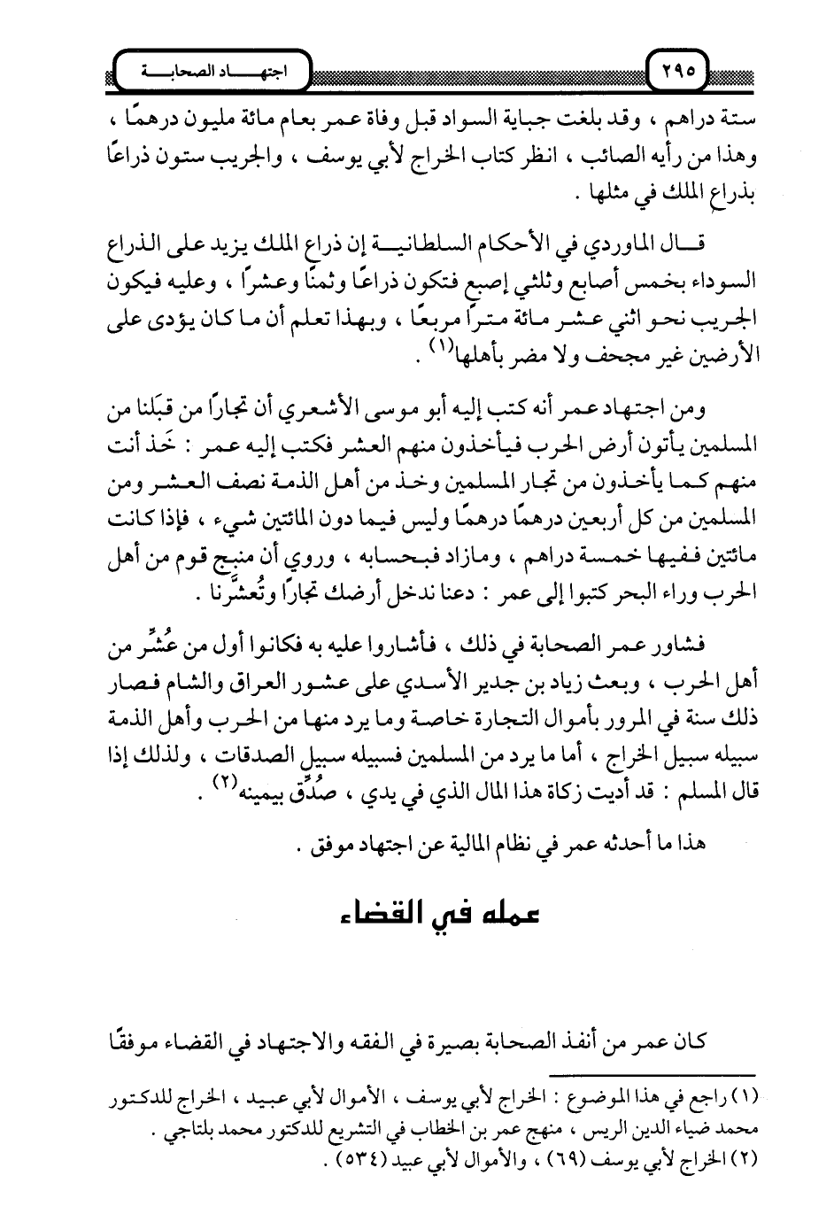 1 راجع في هذا الموضع، الخراج لأبي يوسف، الأموال لأبي عبيد، الخراج للدكتور محمد ضياء الدين الريس، منهج عمر بن الخطاب في التشريع للدكتور محمد بلتاجي.