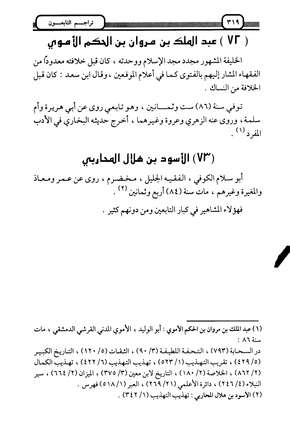 1 عبد الملك بن مروان بن الحكم الأموي: أبو الوليد الأموي المدني القرشي الدمشقي، مات سنة 86. در السحابة "793"، التحفة اللطيفة "3/ 90"، الثقات "5/ 120"، التاريخ الكبير "5/ 429"، تقريب التهذيب "1/ 532"، تهذيب التهذيب "6/ 422"، تهذيب الكمال "2/ 862"، الخلاصة "2/ 180"، التاريخ لابن معين "3/ 375"، الميزان "2/ 664"، سير النبلاء "4/ 246"، دائرة الأعلمي "21/ 269"، العبر "1/ 518" فهرس.