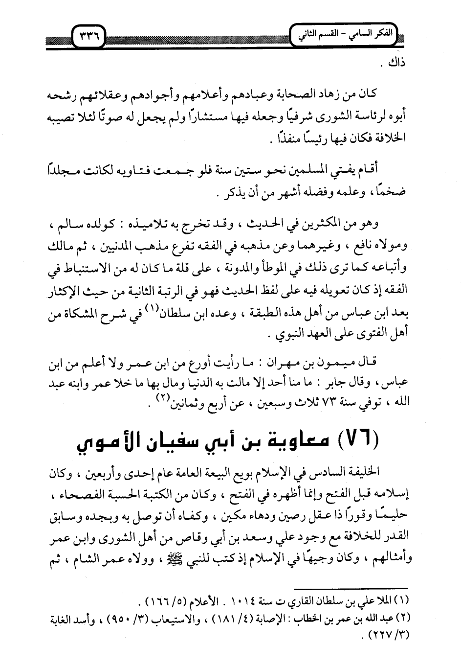 قال ميمون بن مهران: ما رأيت أورع من ابن عمر ولا أعلم من ابن عباس، وقال جابر: ما منا أحد إلّا مالت به الدنيا ومال بها ما خلا عمر وابنه عبد الله، توفي سنة 73 ثلاث وسبعين، عن أربع وثمانين2.