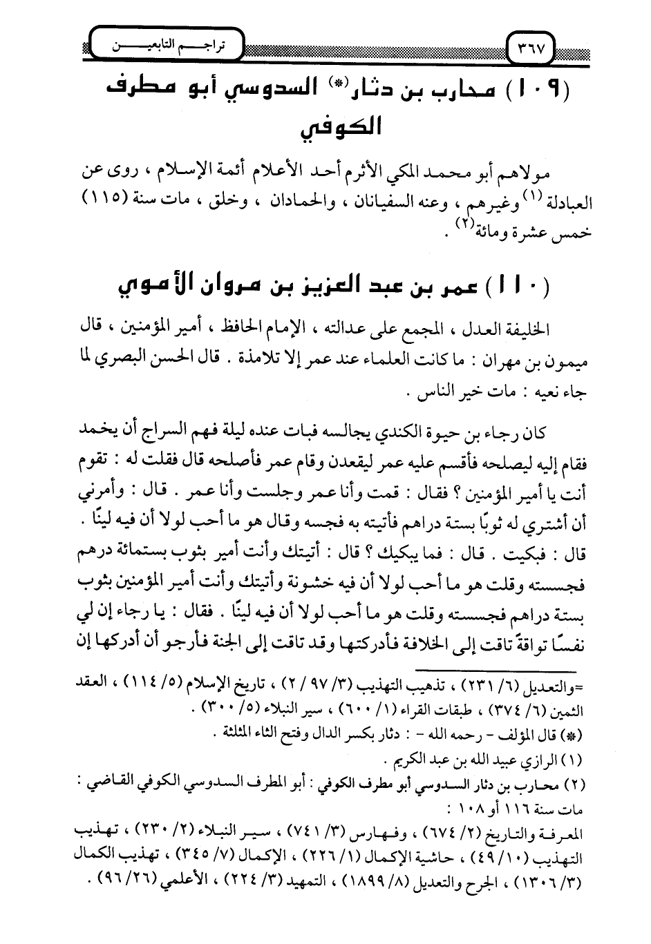 3 محارب بن دثار السدوسي أبو مطرف الكوفي، أو المطرف السدوسي الكوفي القاضي, مات سنة 116 أو 108.