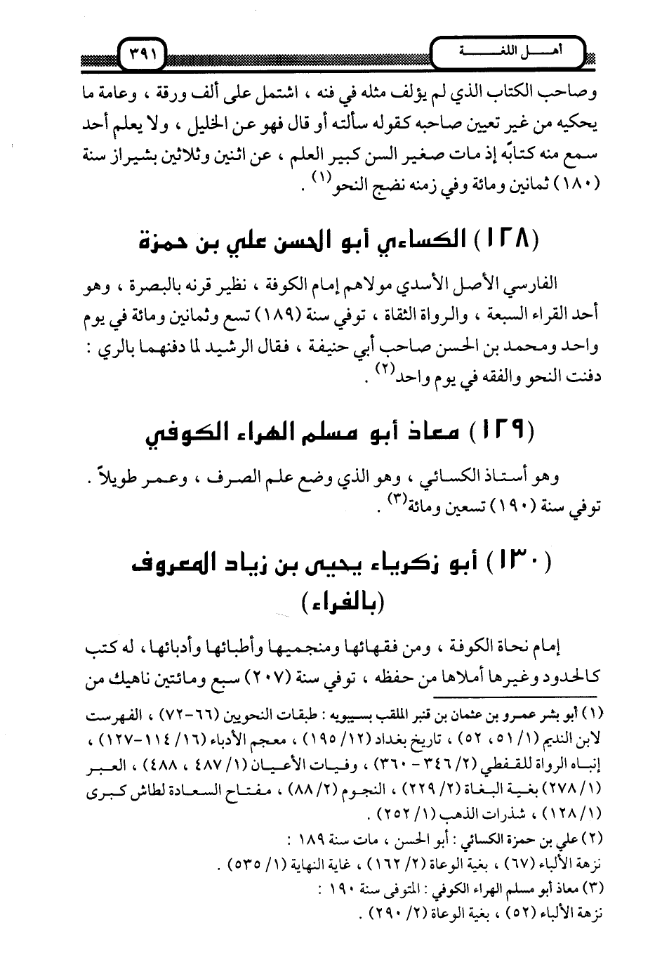 1 علي بن حمزة الكسائي, أبو الحسن، مات سنة 189: نزهة الألباء "67"، بغية الوعاة "2/ 162"، غاية النهاية "1/ 535".