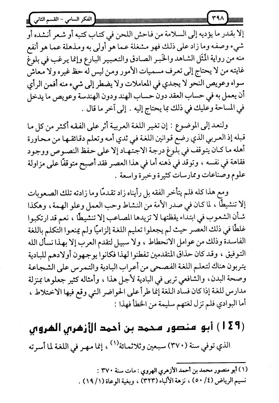 1 أبو منصور محمد بن أحمد الأزهري الهروي, مات سة 370: نسيم الرياض "4/ 50"، نزهة الألباء "323"، وبغية الوعاة "1/ 19".