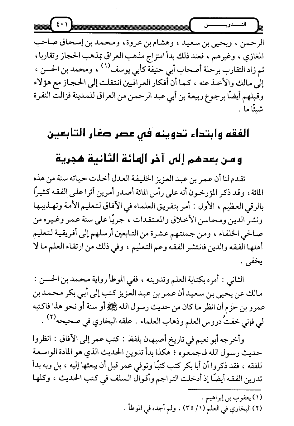 وأخرجه أبو نعيم في تاريخ أصبهان بلفظ: كتب عمر إلى الآفاق: انظروا حديث رسول الله فاجمعوه؛ هكذا بدأ تدوين الحديث الذي هو المادة الواسعة للفقه، فقد ذكروا أن أبا بكر كتب كتبًا, وتوفي عمر قبل أن يبعثها إليه، بل وبه بدأ تدوين الفقه أيضًا إذا أدخلت التراجم وأقوال السلف في كتب الحديث، وكلها