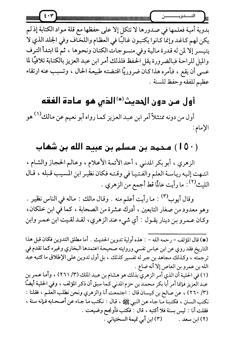 أوَّل من دوَّن الحديث 1 الذي هو مادة الفقه:
