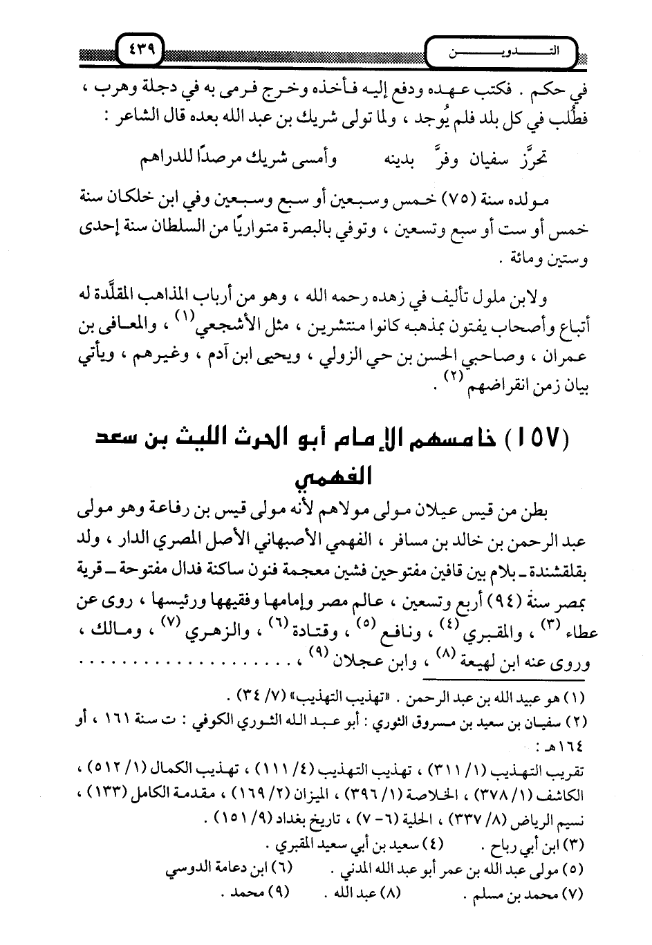 ترجمة خامسهم الإمام أبو الحرث الليث بن سعد الفهمي