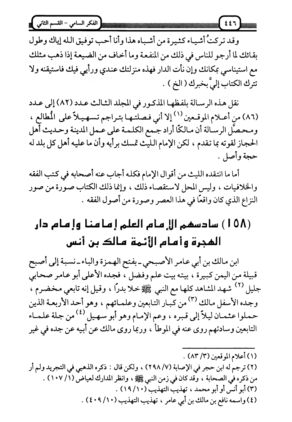 ترجمة سادسهم الإمام العلم إمامنا وإمام دار الهجرة وأمام الأئمة مالك بن أنس