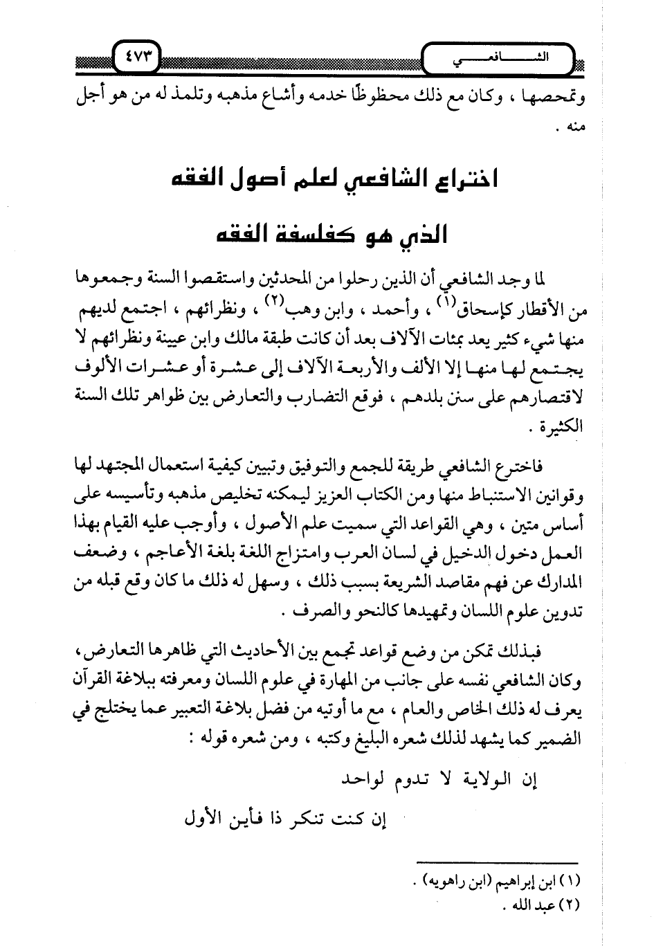 اختراع الشافعي لعلم أصول الفقه الذي هو كفلسفة الفقه: