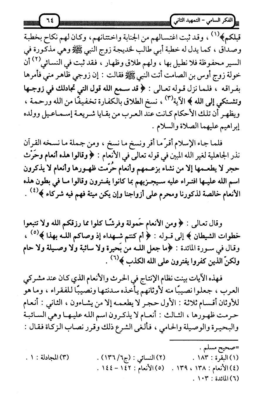 فهذه الآيات بينت نظام الإنتاج في الحرث والأنعام الذي كان عند مشركي العرب، فجعلوا نصيبًا منه لأوثانهم يأخذه سدنته, ونصيبًا للفقراء، وما هو للأوثان أقسام ثلاثة: الأول: حجر لا يطعمه إلّا من يشاءون, الثاني: أنعام حرمت ظهورها، الثالث: أنعام لا يذكرون اسم الله عليها وهي السائبة والبحيرة والوصيلة والحامي، فألغى الشرع ذلك وقرَّر نصاب الزكاة فقال: