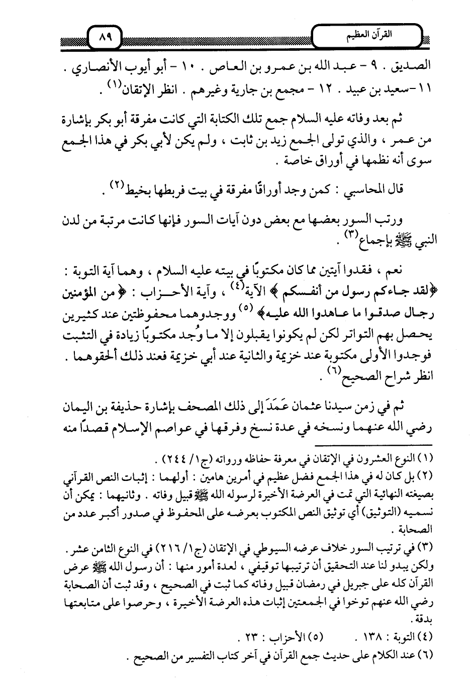 3 في ترتيب السور خلاف عرضه السيوطي في الإتقان "ج1/ 216" في النوع الثامن عشر, ولكن يبدو لنا عند التحقيق أن ترتيبها توقيفي، لعدة أمور منها: أن رسول الله -صلى الله عليه وسلم- عرض القرآن كله على جبريل في رمضان قبيل وفاته كما ثبت في الصحيح، وقد ثبت أن الصحابة -رضي الله عنهم توخّوا في الجمعتين إثبات هذه العرضة الأخيرة، وحرصوا على متابعتها بدقة.