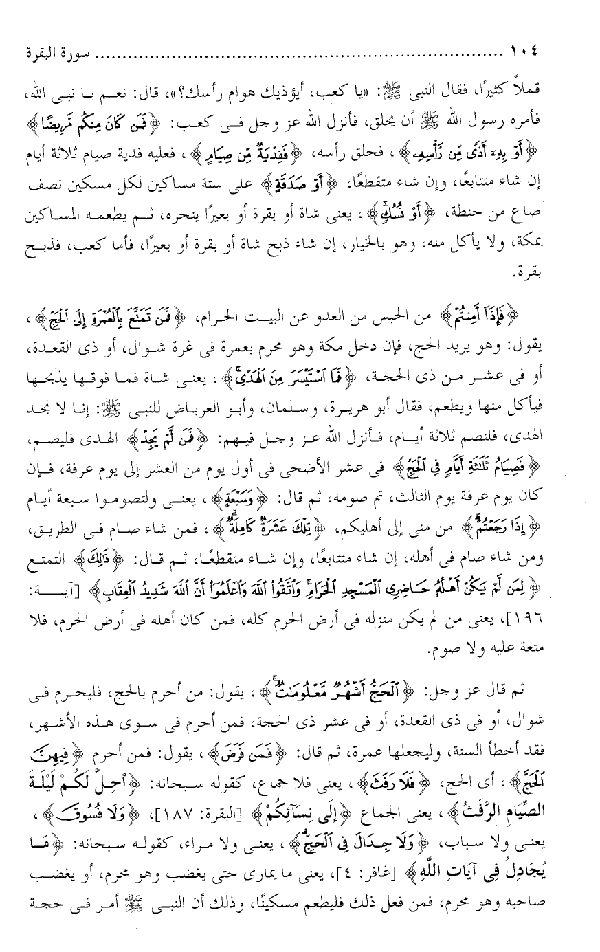 فأمره رسول الله ( صلى الله عليه وسلم ) أن يحلق ، فأنزل الله عز وجل في كعب : ( فمن كان منكم مريضا (
