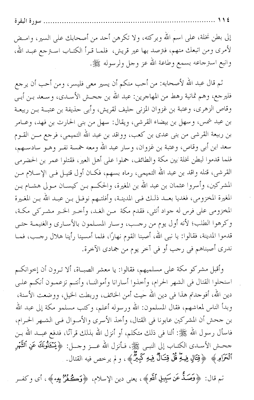جحش الأسدي الكتاب إلى النبي ( صلى الله عليه وسلم ) ، فأنزل الله عز وجل : ( يسئلونك عن الشهر
