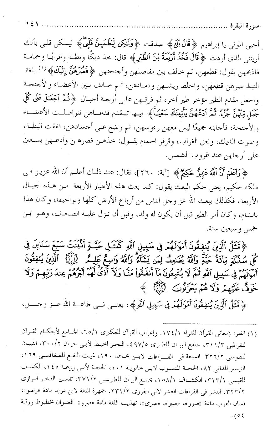 وصوت الديك ، ونعق الغراب ، وقرقر الحمام يقول : خذهن فصرهن وادعهن يسعين