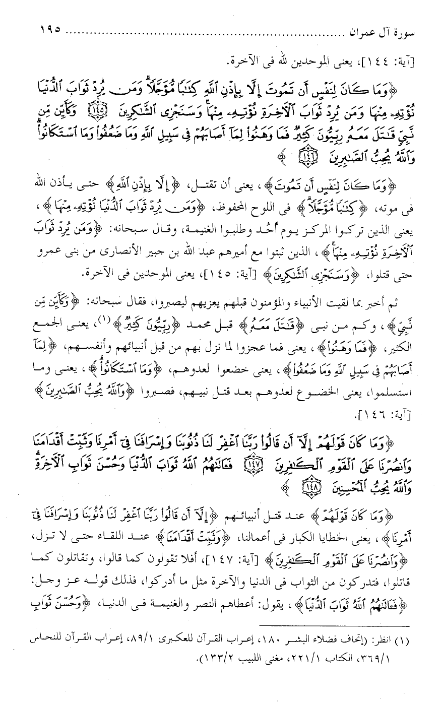 تفسير سورة آل عمران آية [ 145 - 146 ]