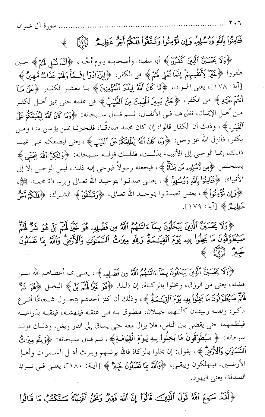 تفسير سورة آل عمران آية 180